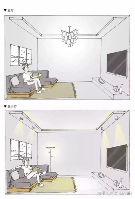 從以上展示圖我們可以很直觀的看到無主燈設計的優勢