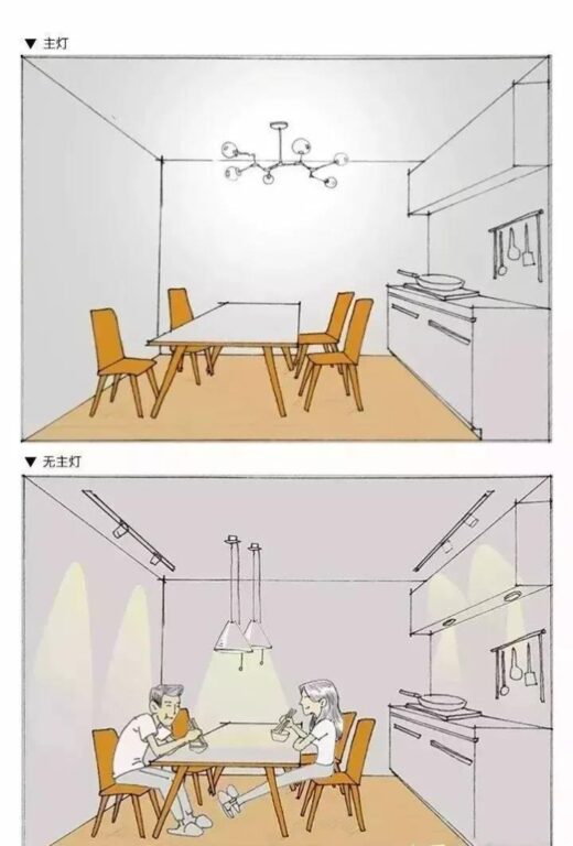 相對于傳統主燈照明,無主燈照明設計摒棄了單一的大吊燈