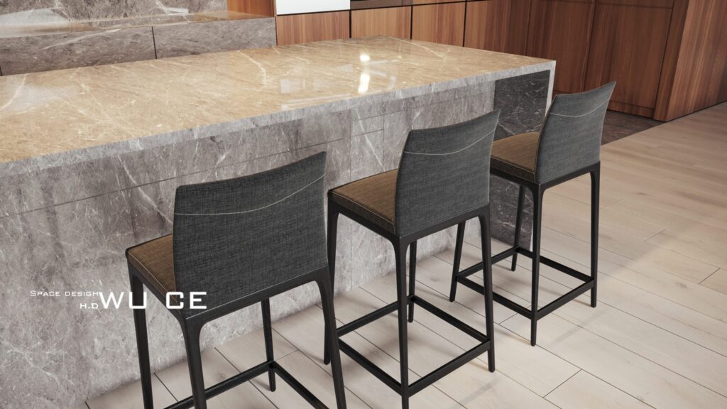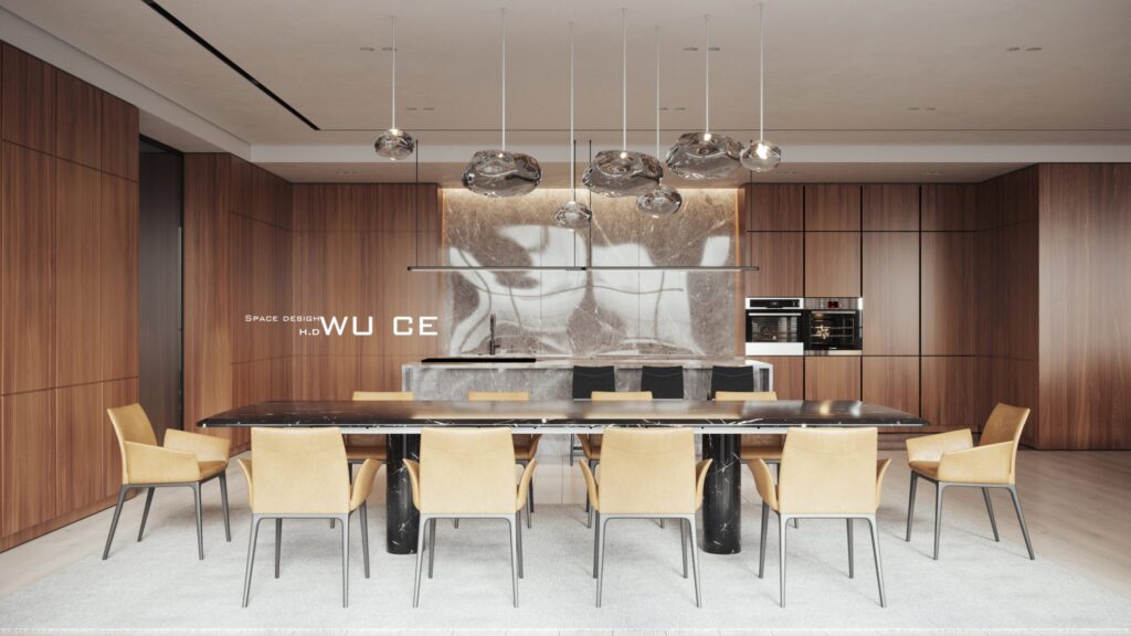 整體開放式廚房設(shè)計(jì),餐廳滿足了用餐和聚會功能。