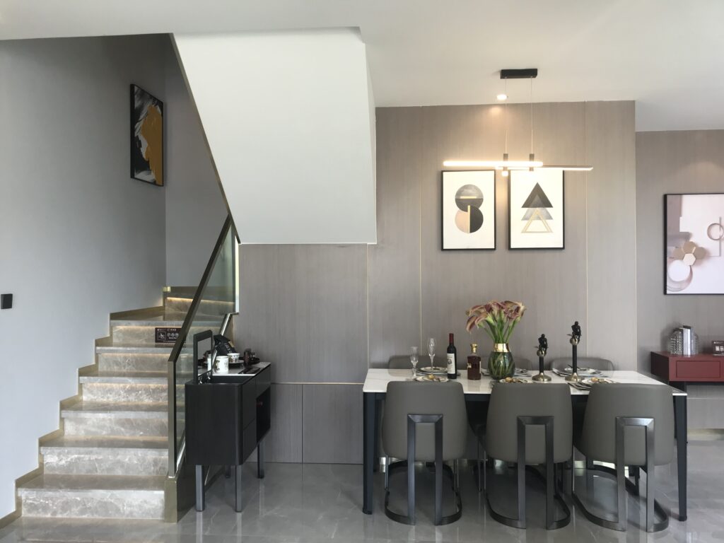 本案是一套獨棟別墅設計,整體以現代輕奢風為主,選用低飽和度,低明度低顏色,點綴少量亮麗色彩配飾,讓空間整體統一,層次豐富。