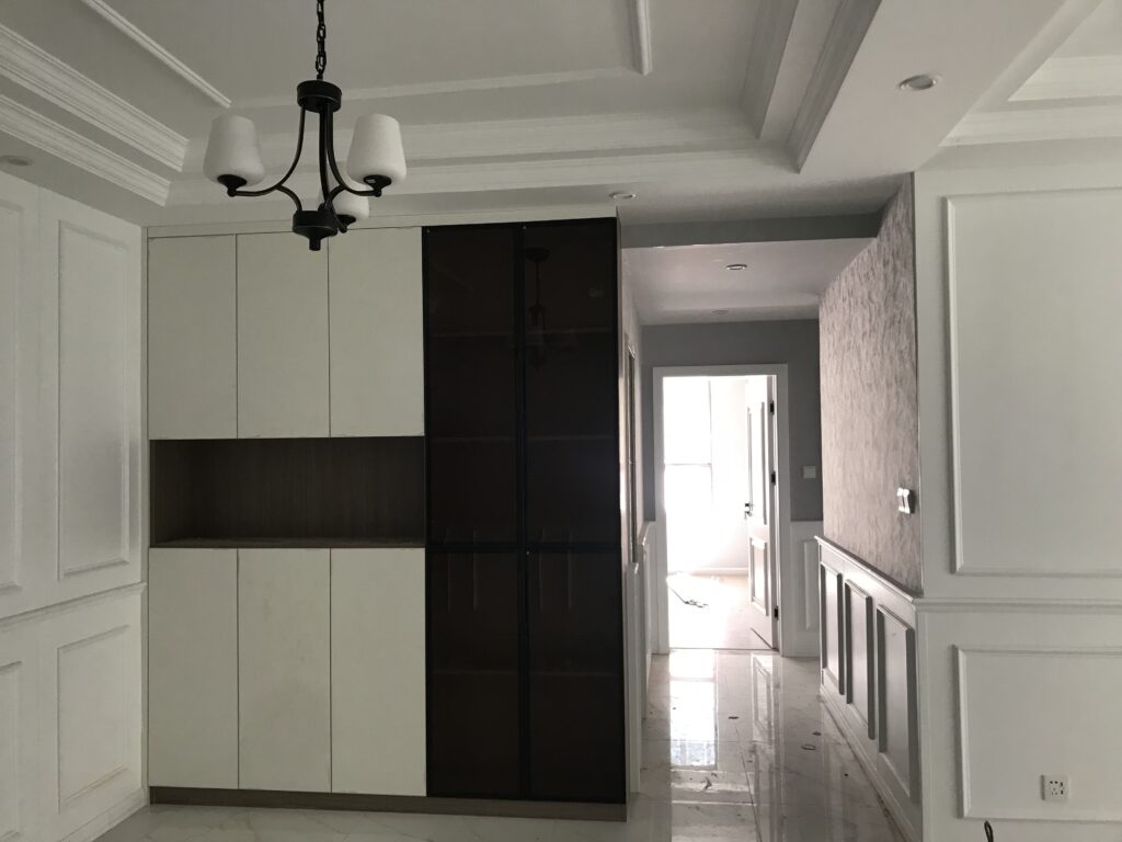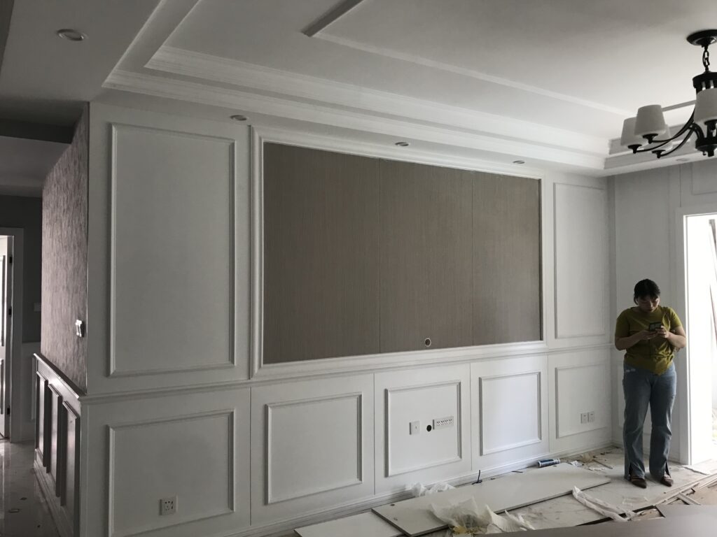 本案是以簡歐輕奢為主調的設計,客戶非常喜歡歐式線條造型,在設計中選用了造型簡約的線條,全屋白色烤漆墻板,每一面墻尺寸劃分考究,整體比例協(xié)調,美觀大方。