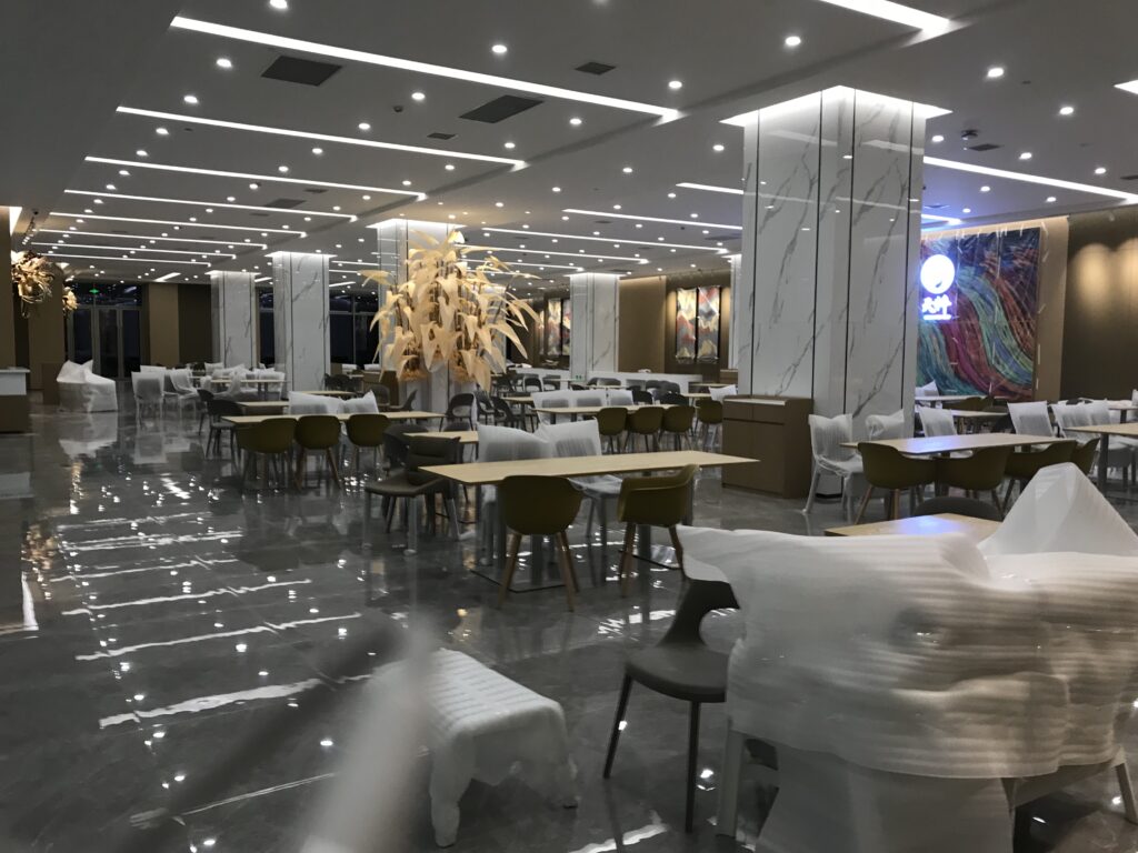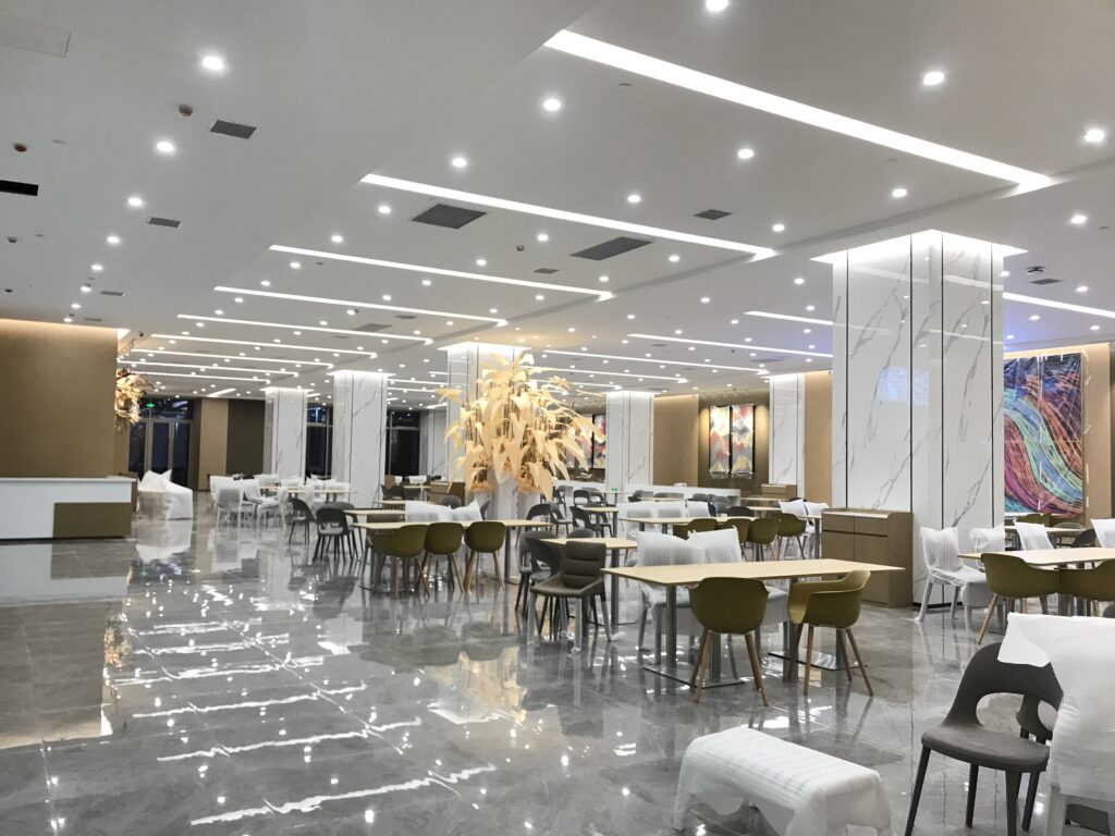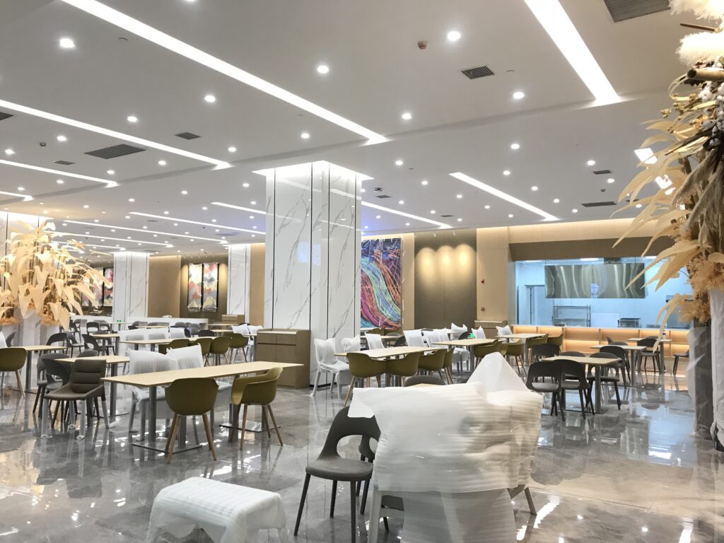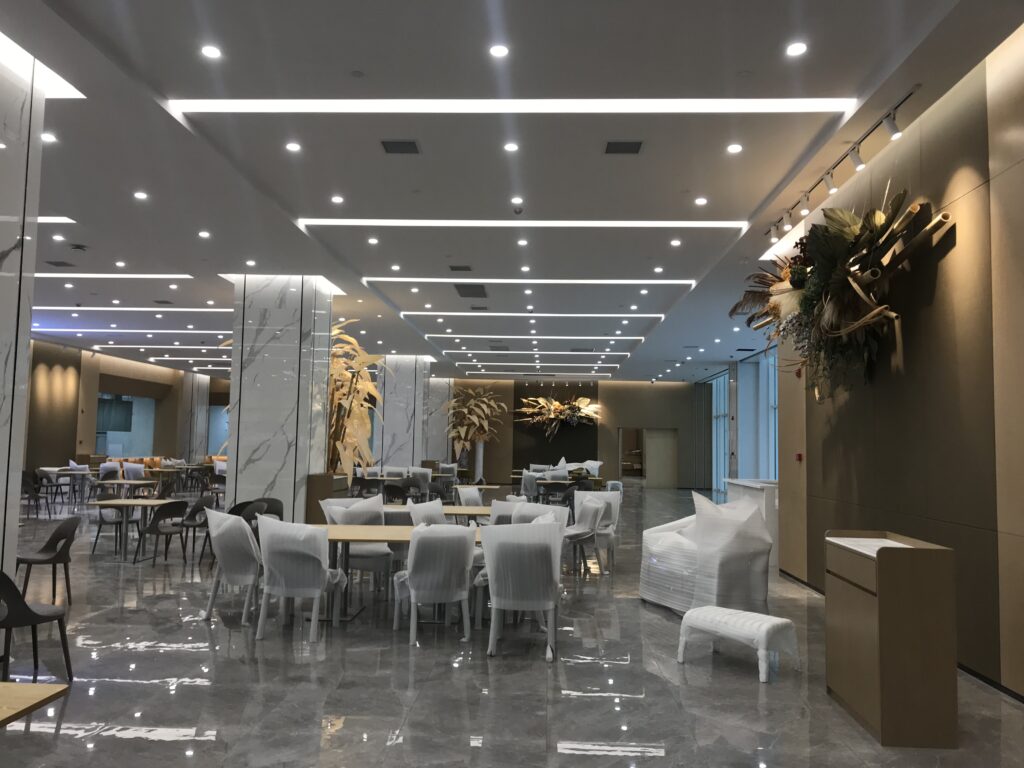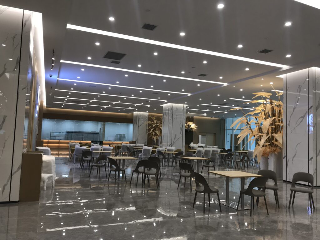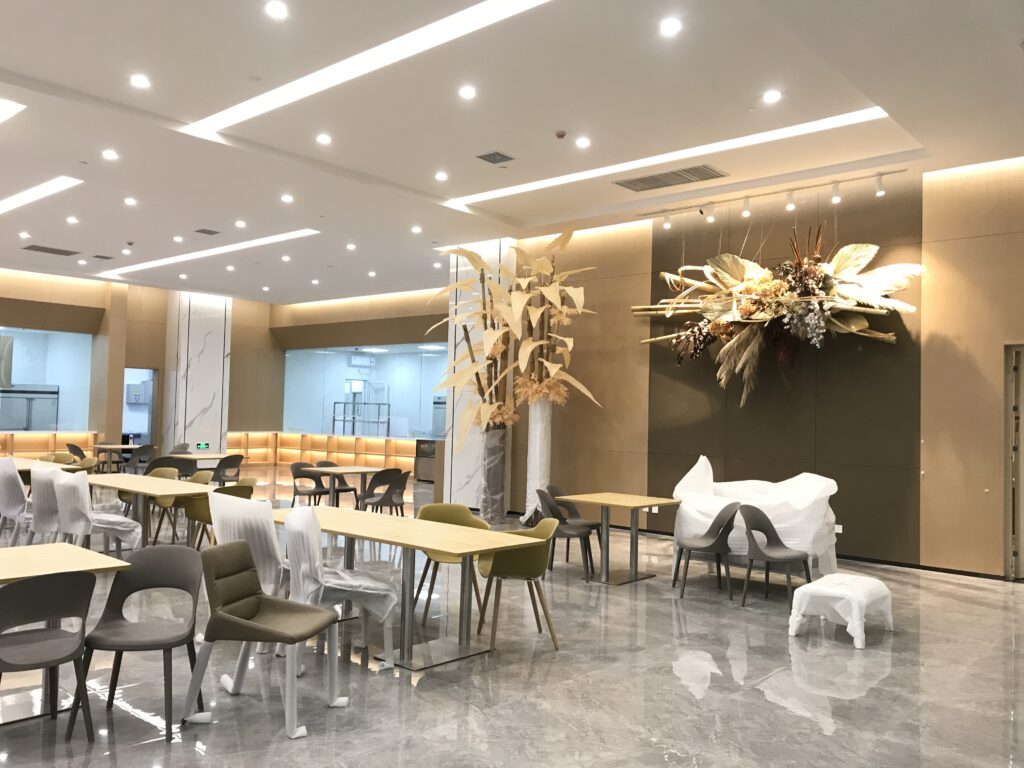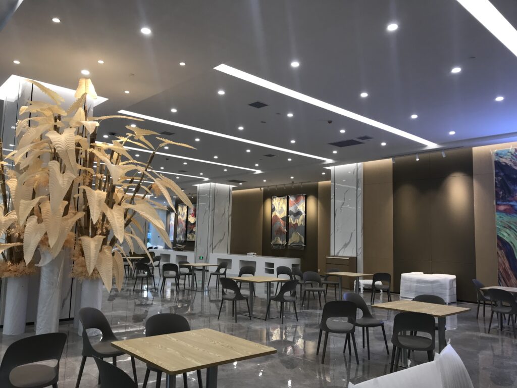 本案是云南白藥集團一個員工餐廳的設計,墻面以烤漆木飾面和皮革硬包搭配平鋪設計,整潔耐用。