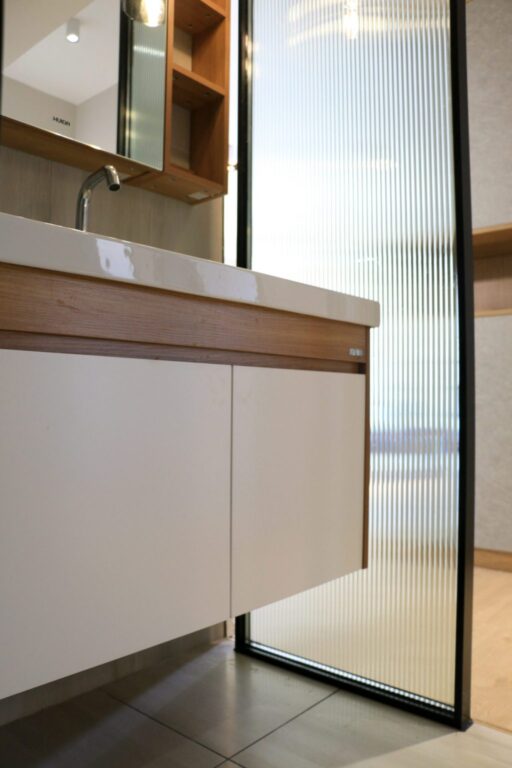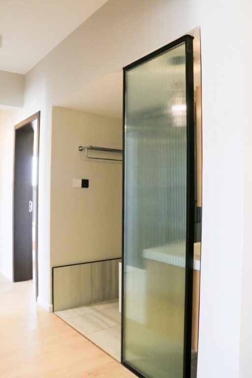 2. 公共衛(wèi)生間靠房子中心區(qū)域,所以基本沒有采光,我們改為半開放式