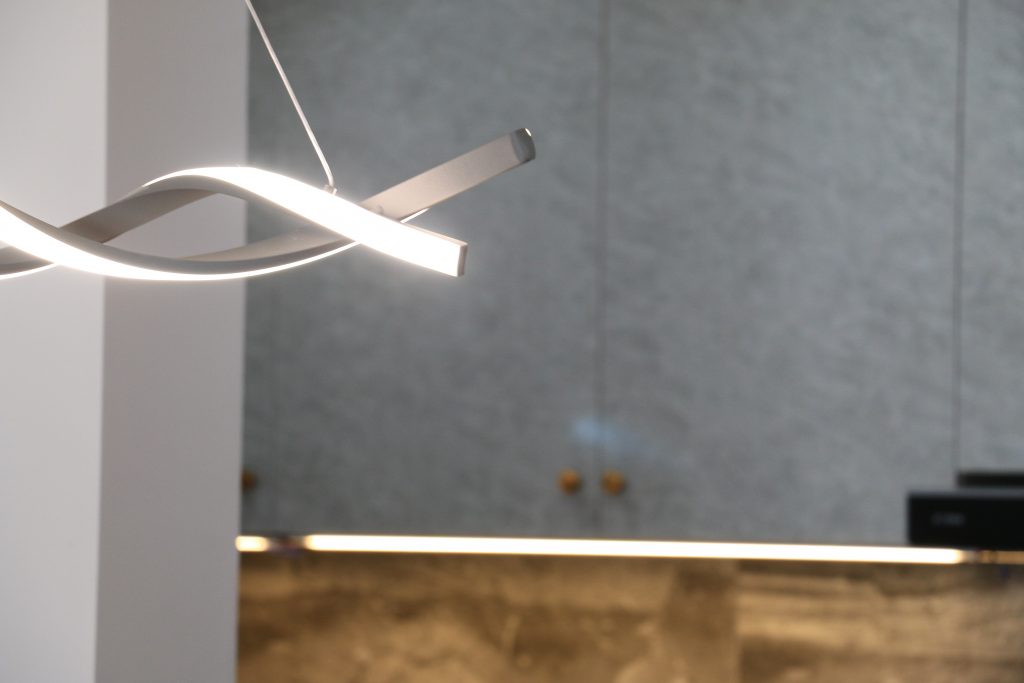 采用無主燈和局部線性燈光設(shè)計(jì),考慮層高偏低的原因,所以采用明裝射燈形式,減少壓抑感,并使頂面更顯干凈簡(jiǎn)約。燈光整體