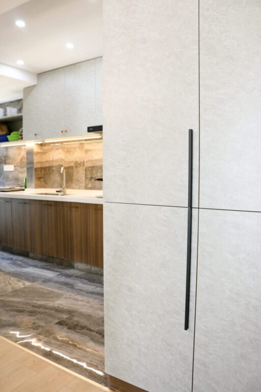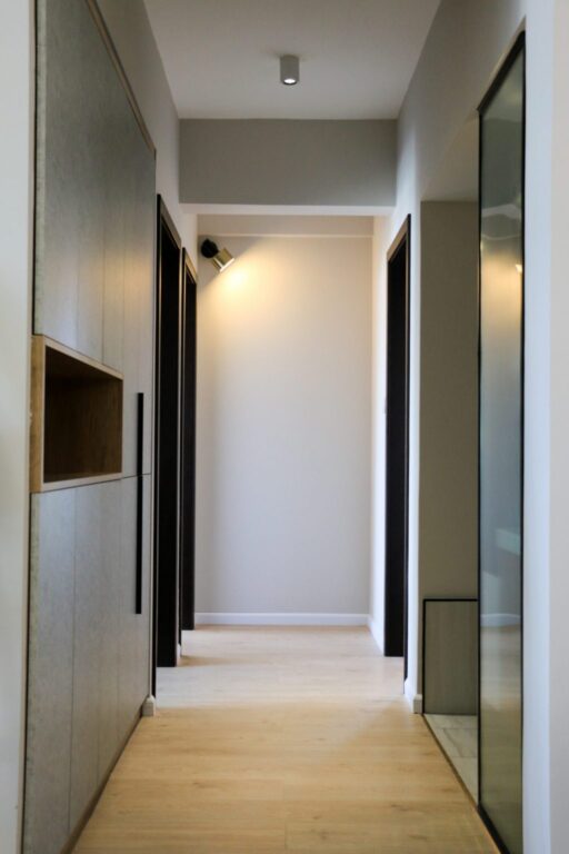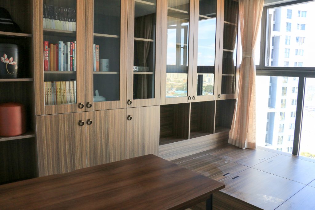 3. 書房過道墻面拆除,改為收納空間,增加了公共區(qū)域的收納容量。