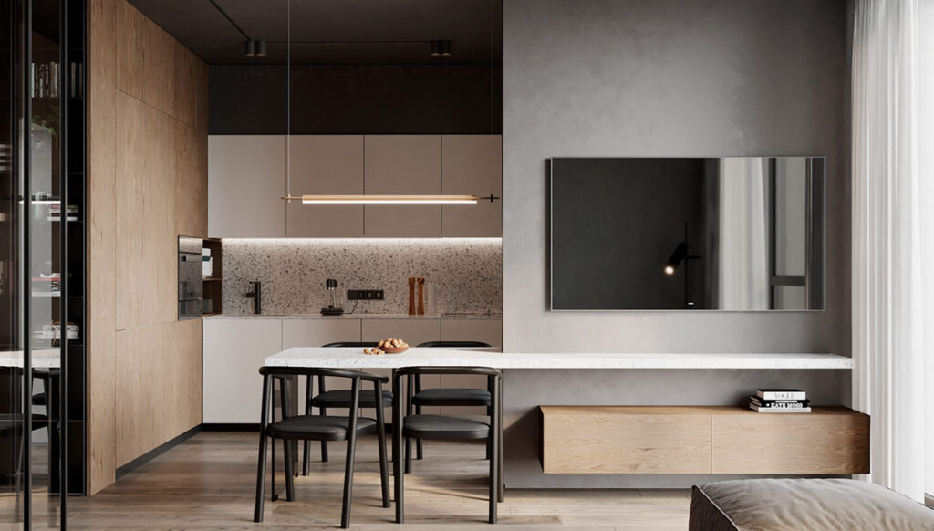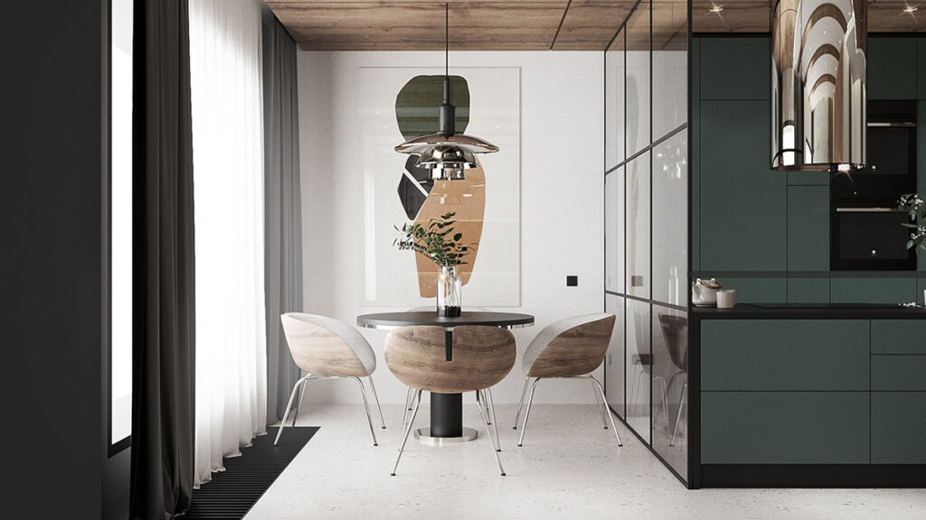 您可以通過安裝玻璃隔板為廚房用餐區提供自己的領域。因為房間分隔線很清晰,它不會截斷空間或阻礙自然光的傳遞,而是會營造出完全獨立的空間感覺。
