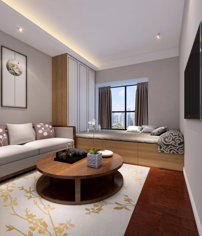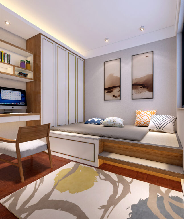 本案是昆明云報華府的一個超級佛系的業(yè)主,也許是跟他的信仰有關(guān)系。給我的感覺很柔和,整體裝修上融入了一些不同風格的元素以及裝飾手法。由于是小戶型,所以從效果圖上來看功能布置上會有些擁擠。